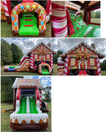 Sweeten your festivities with our Gingerbread Bounce House Slide Double! This delightful inflatable is perfect for holiday events or any sweet-themed party, featuring vibrant, gingerbread-inspired designs. With a spacious bounce area and double slides for twice the fun, kids can enjoy endless hours of active play. Ideal for Christmas celebrations, winter festivals, or simply adding a dash of whimsy to any gathering, this bounce house slide combo is a crowd-pleaser. Rent the Gingerbread Bounce House Slide Double today and create unforgettable memories with a sprinkle of gingerbread joy!